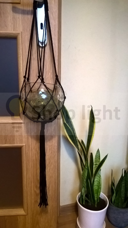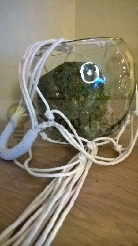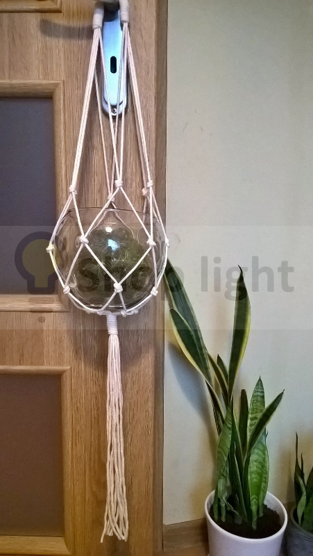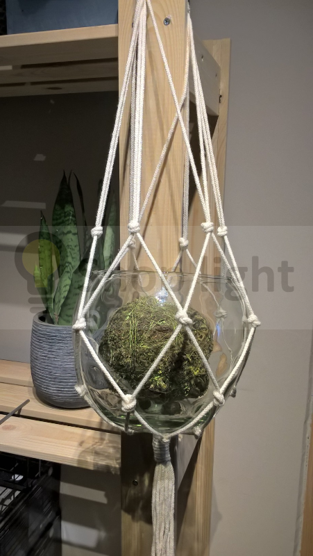 Doskonały do zawieszenia roślin pokojowych, kokedamy, okrągłych pojemników szklanych, jako wazon.
