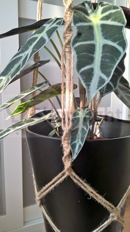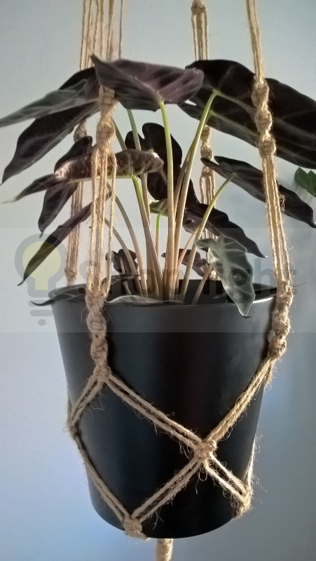 Powieś donice w kwietniku wiszącym jutowym. Możesz powiesić dowolną donicę.
