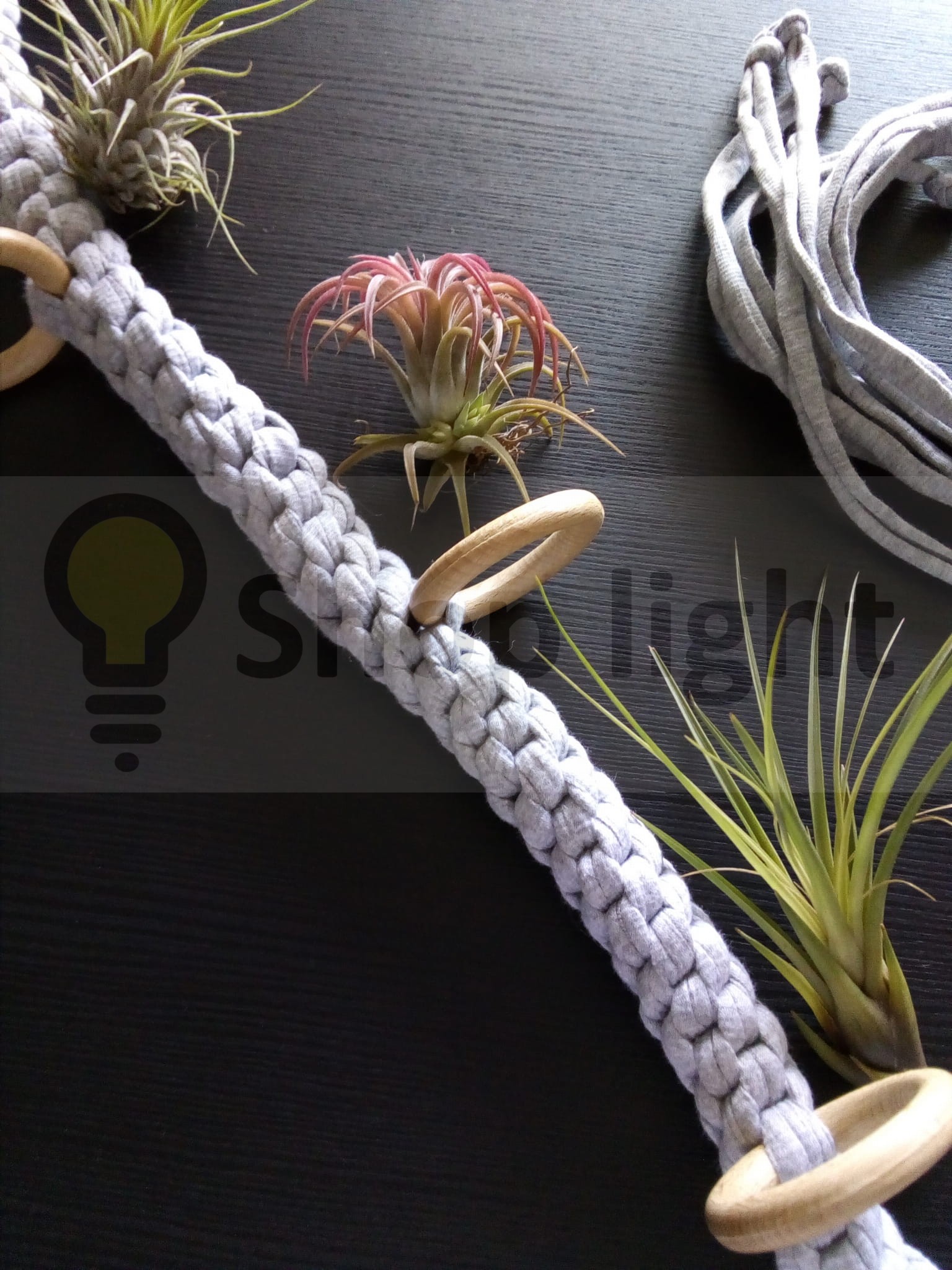 Kwietnik makrama wiszący - Oplątwa(Air plant)- Szary