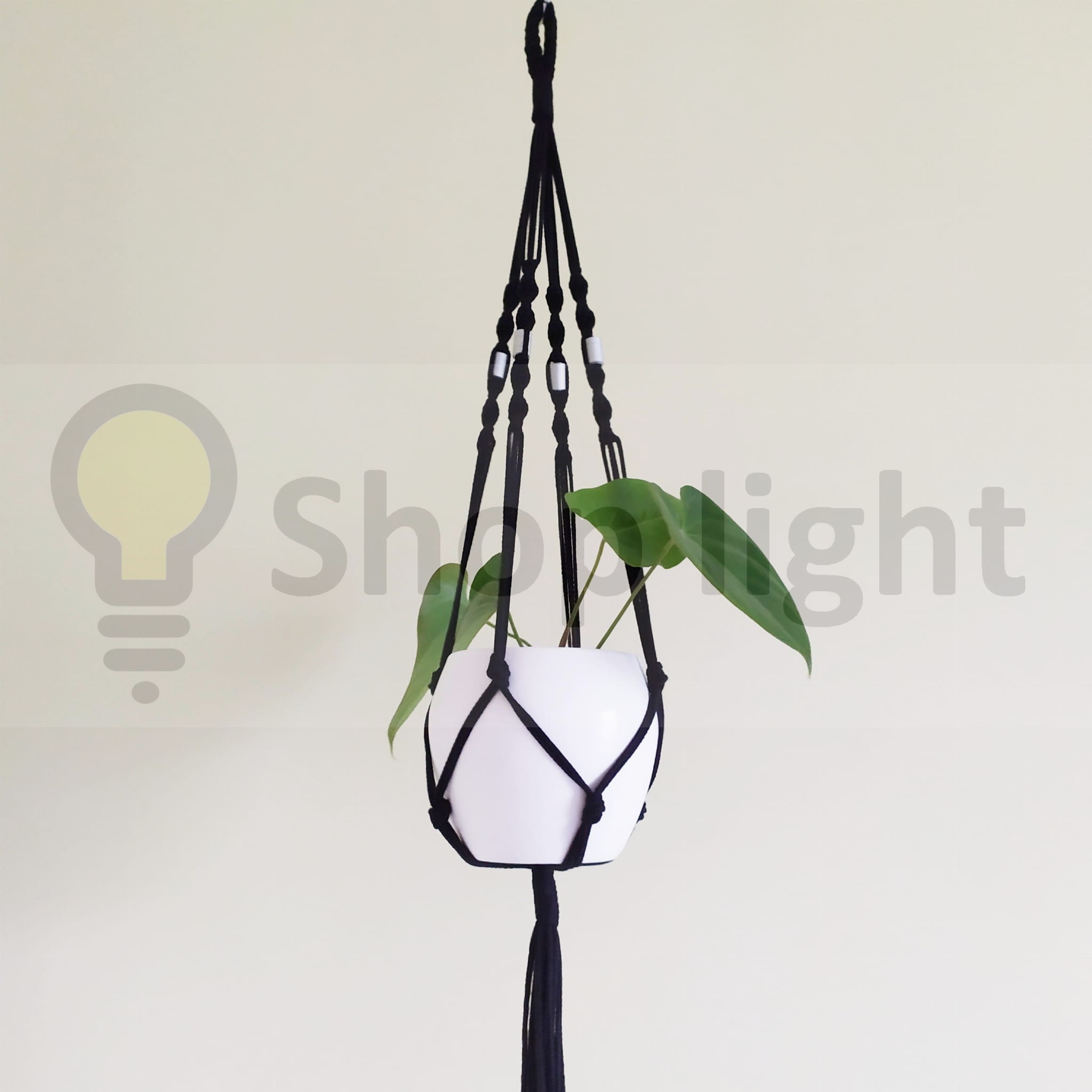 Kwietnik wiszący makrama Czarny /srebrne pierścienie