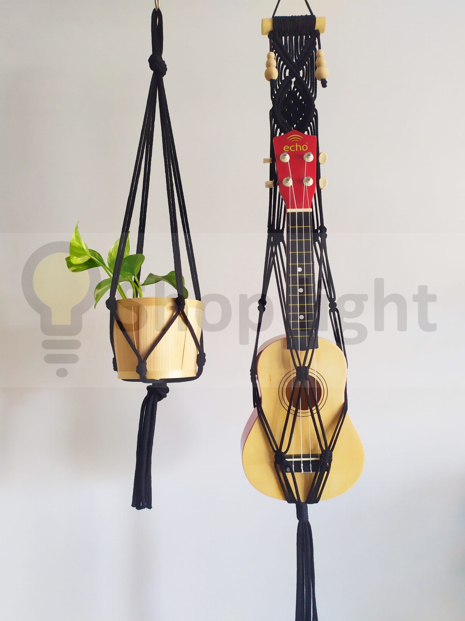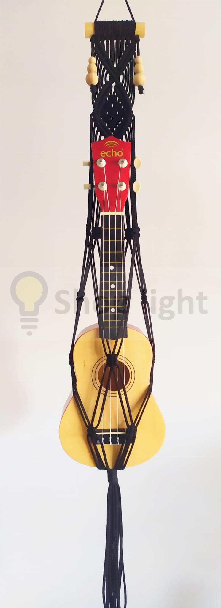 Makrama, wieszak na ukulele- kolor czarny "Koral"