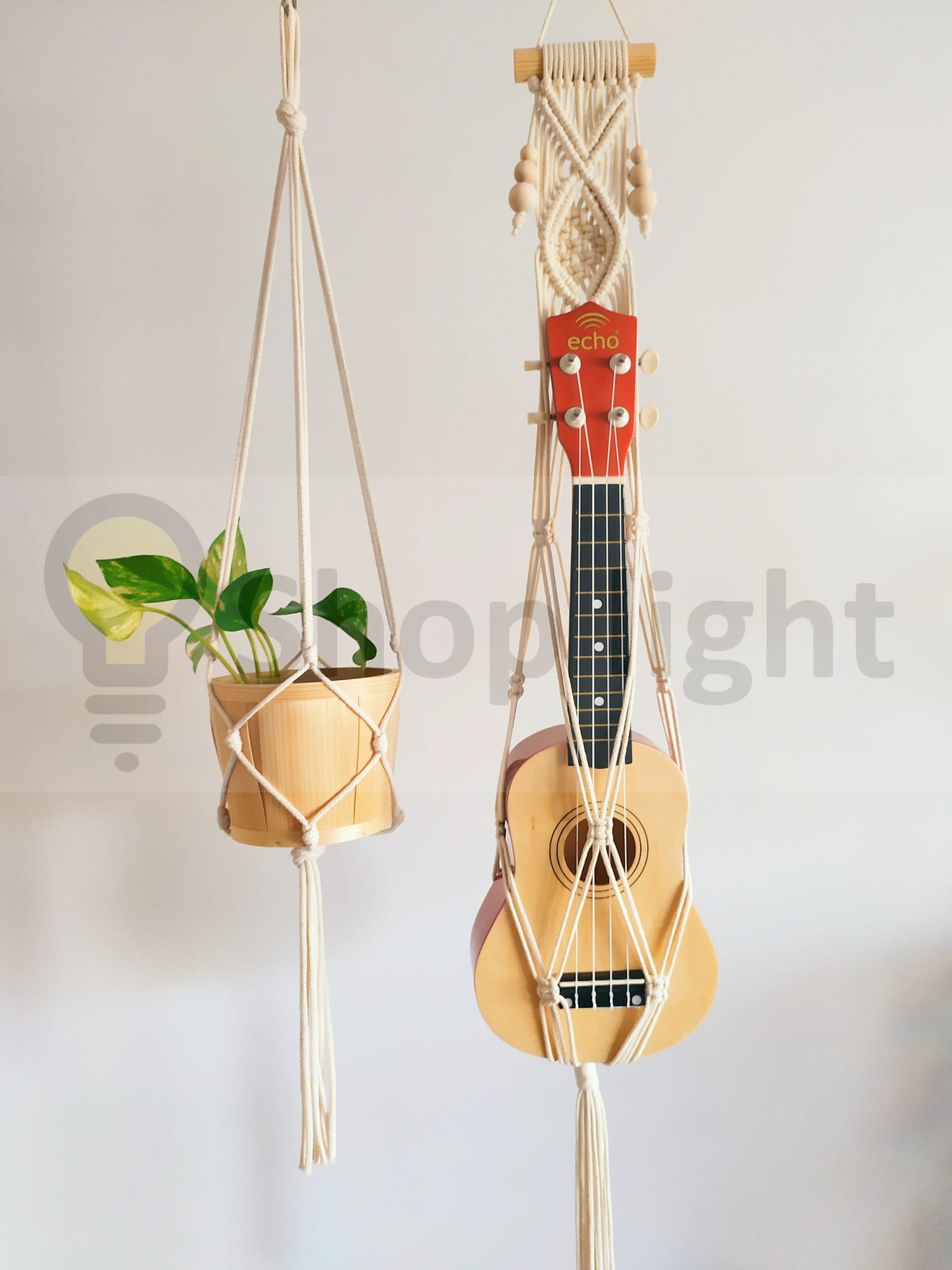 Makrama, wieszak na ukulele- kolor naturalny "Koral"