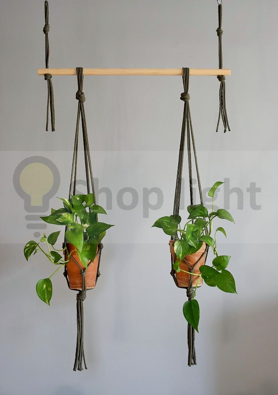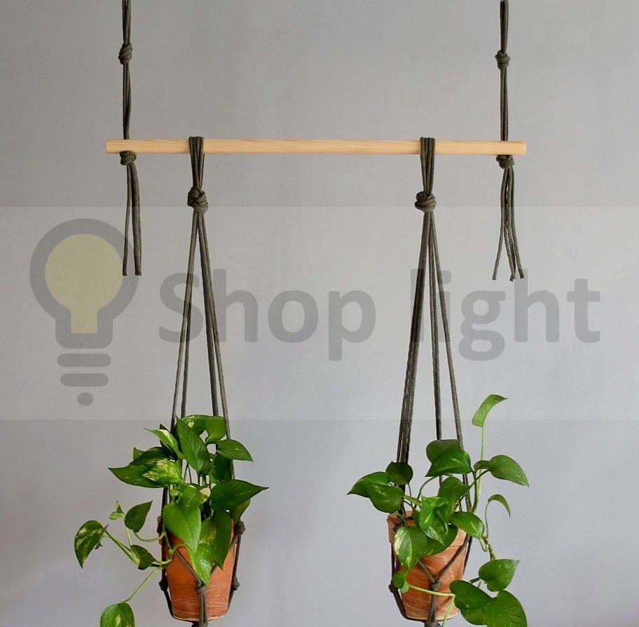 - Kwietniki oraz zawiesie drążka wykonane ze sznurka w kolorze oliwkowym 5 mm.